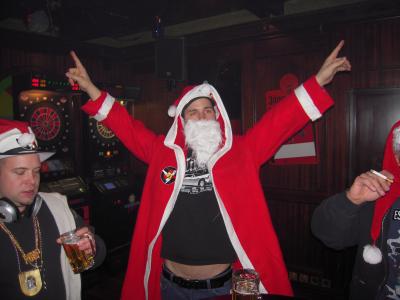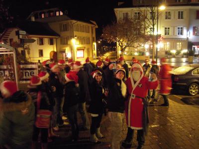 Und wieder einmal hiess es: Ihr Kinderlein kommet, o kommet doch all, zur Beizentour her kommet in Sissacher’s stall. Und sie kamen in Scharren. Start der Beizentour war wie gewohnt beim Postplatz. Die ersten zwei Chiquitas sind aber erst bei der Weinstube dazugestossen. Ein Meer von Samichläusen-Mützen wurde uns präsentiert. Und mittendrin waren wir. Schnell war’s vorbei mit Stille Nacht, heilige Nacht. Einige Beizen empfingen uns nicht mit offenen Armen. Was uns nicht vom Bier trinken abhielt. Vor dem Hotel Sonne sammelten sich die roten Kläuse und das OK organisierte vom Alban Market Bier in Dosen. Hier stiess die dritte Chiquita + Anhang dazu. Die Stimmung eskalierte bereits in der vierten (oder war’s die fünfte?) bar - im Lindbergpub. Kurzerhand übernahm DJ Abt das Mischpult und spielte von Offspring bis DJ Antoine alles durch. Leise rieselt der Schnee das Bier, still und starr gibt’s nicht hier. Weiter ging’s in den Löwen. Wir erhielten den grossen Saal, damit wir die anderen Gäste nicht störten. Weshalb bloss, unser Verhalten war doch so kultiviert.